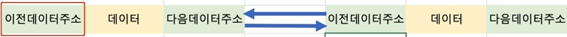 이전 기본 연결 리스트의 노드에는 데이터와 next 주소만 있었다면,