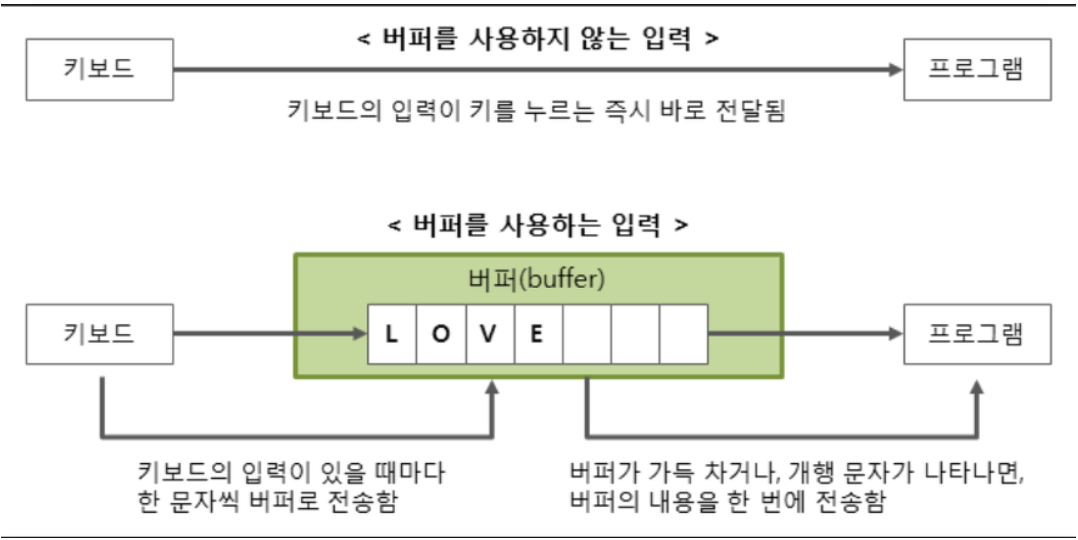 - 버퍼를 이용해서 읽고 쓰면 속도 향상에 효율적