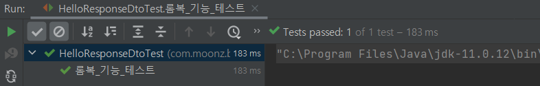 그리고 ResponseDto에 값을 줬을 때 롬복이 잘 작동하는지 검증하였다.