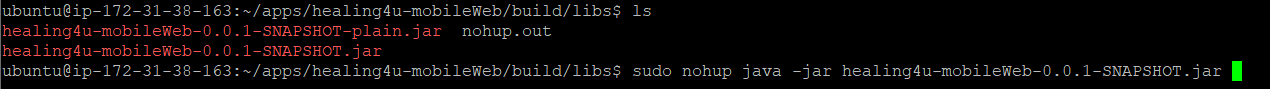 sudo nohup java -jar build/libs/{jar파일} &