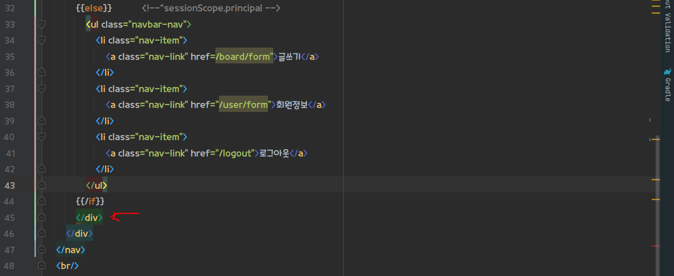 결국 저 에러메시지가 말하고 있다. if문 태그 부분에 문제가 있어보이는 에러이다.