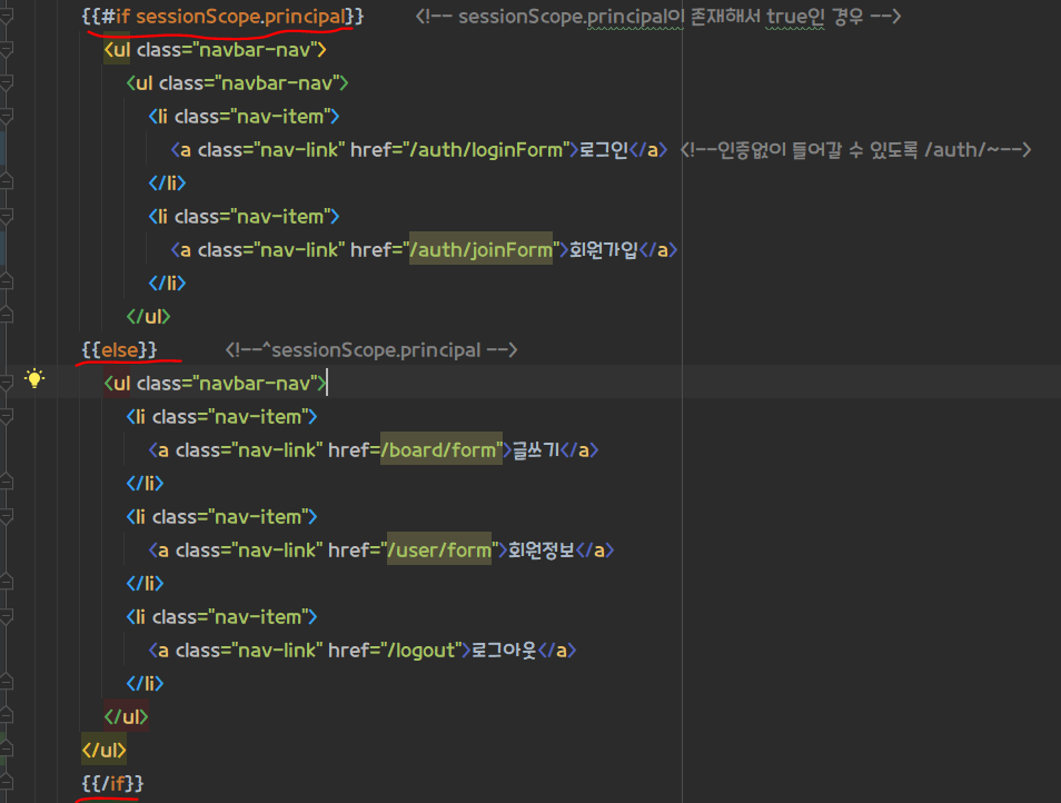 {{^sessionScope.principal}} <!-- sessionScope.principal이 존재해서 true인 경우 -->