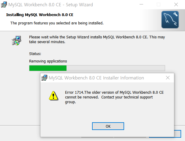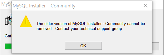 The older version of MySQL Installer - Community cannot be removed. Contact your technical support group.