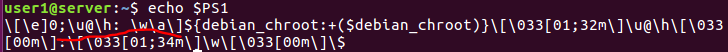 현재 프롬프트 형식이 user1@server:~$ 이런식. 즉 PS1='[\u@\h: \W]\$'