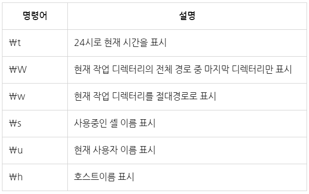 셸의 프롬프트 형식을 사용자 임의대로 변경할 수 있음!