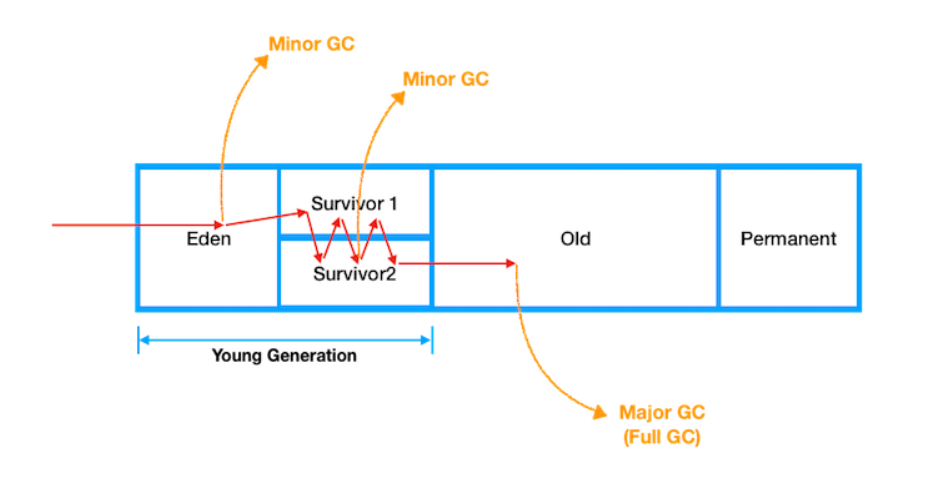 Old Generation 영역에서 메모리가 모두 할당되면 Old Generation 영역에서 garbage를 수집하는 과정인 MajorGC가 발생합니다.