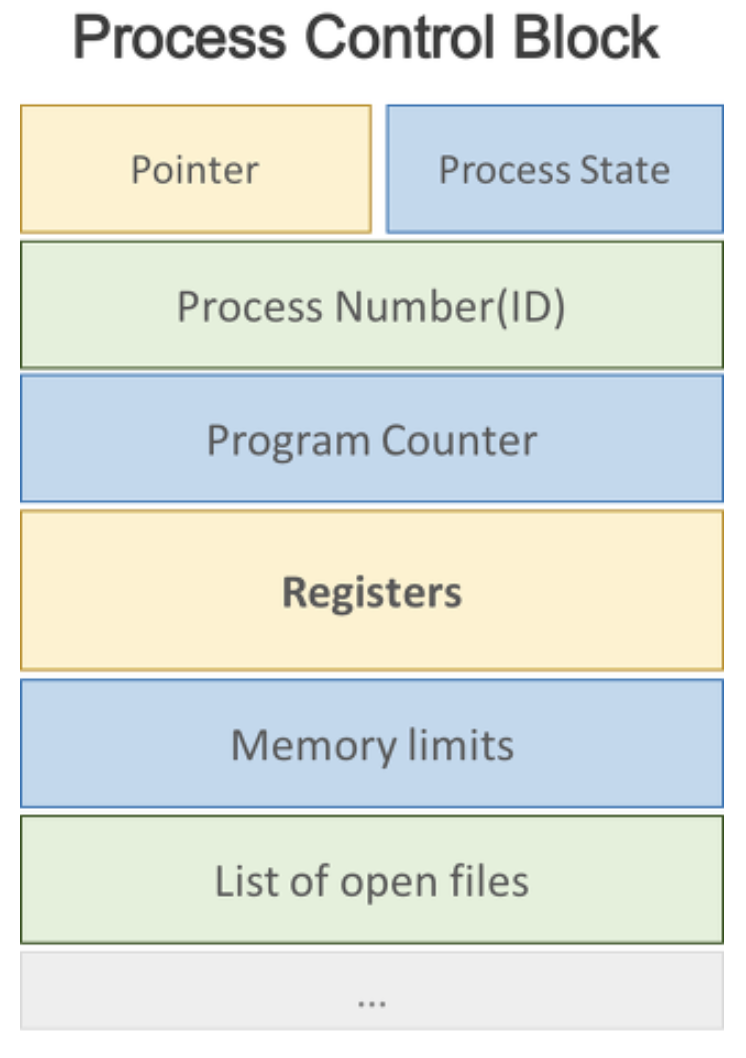 *Process Control Block (PCB) : 운영체제가 프로세스를 제어하기 위해 프로세스의 상태 정보를 저장하는 구조체
