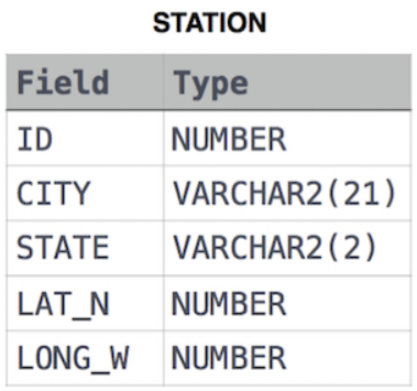 The STATION table is described as follows: