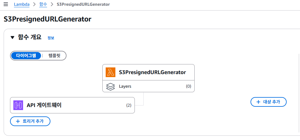 결론적으로, 호출자 검증 및 권한 관리를 위한 Authorizer 함수와 S3 Presigned URL 생성 함수를 Lambda에 등록하였다.