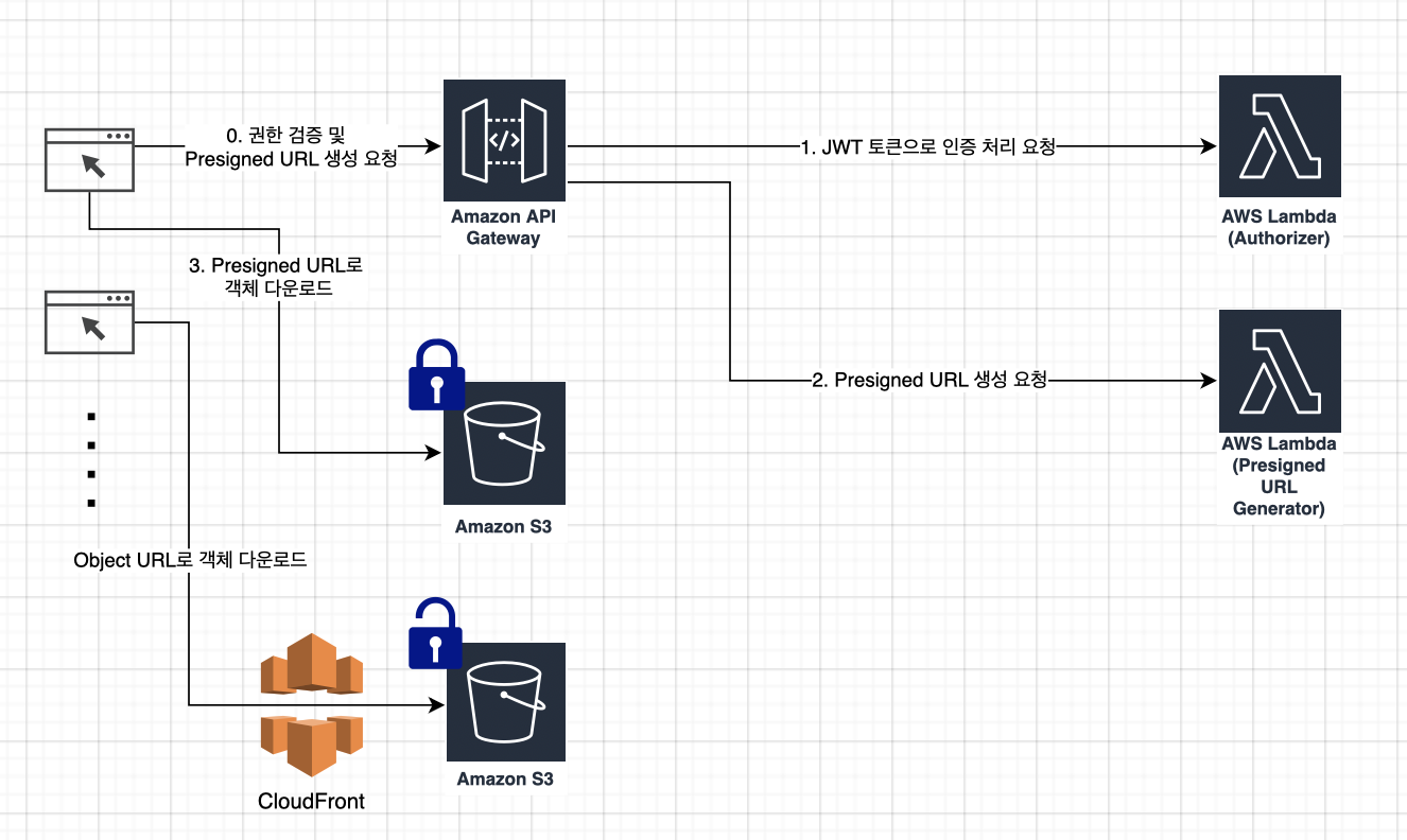 S3 버킷의 Presigned URL을 생성하는 주체를 Lambda로 제한하게 되면 각 사용자 (부서/서비스)마다 IAM 권한을 부여/관리 하지 않아도 된다.