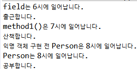 System.out.println("field는 6시에 일어납니다.");