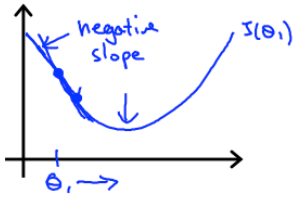 음수 미분계수(기울기)이므로, (d/d*θ1)*J(θ1) ≤ 0