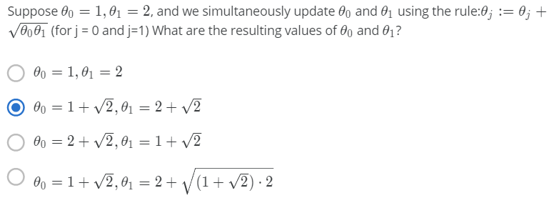 j=1) Θ1 := Θ1 + 루트(Θ0Θ1) 이므로 2 + 루트2
