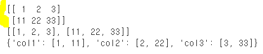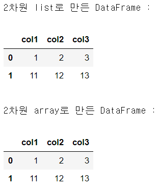 print('2차원 list로 만든 DataFrame : ')