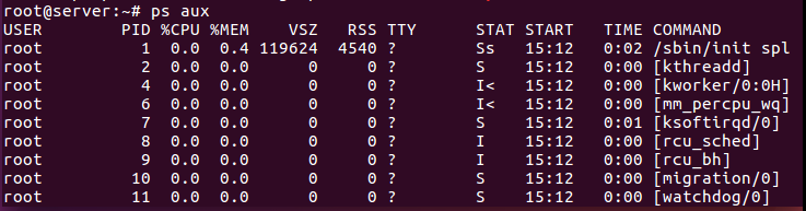 ps aux 를 하게되면 더 구체적인 정보(ps 소유자명, CPU사용 비율 추정치 등)가 출력됨.