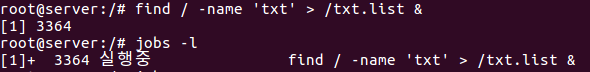 ◦ 백그라운드에서 포그라운드로 전환 시 : fg [%]작업번호 ('fg'만 입력 시 현재 bg로 실행중인 명령어를 fg로 전환.)