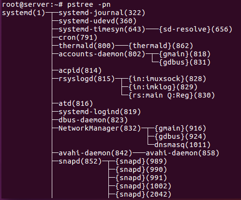 pstree -pn : PID를 표시하고 PID정렬을 한 ps 트리구조
