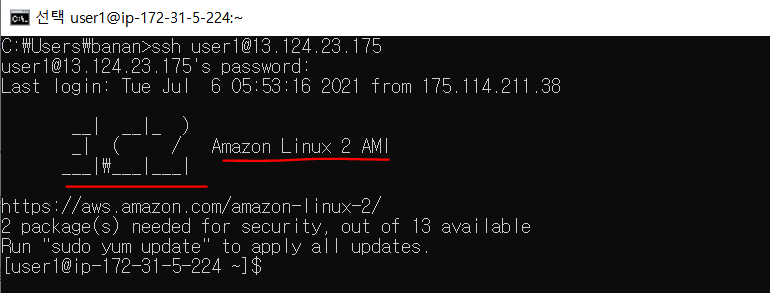 그렇게 인스턴스에 접속 완료한 상태에서 바로 사용자 계정을 생성해주면 됩니다.